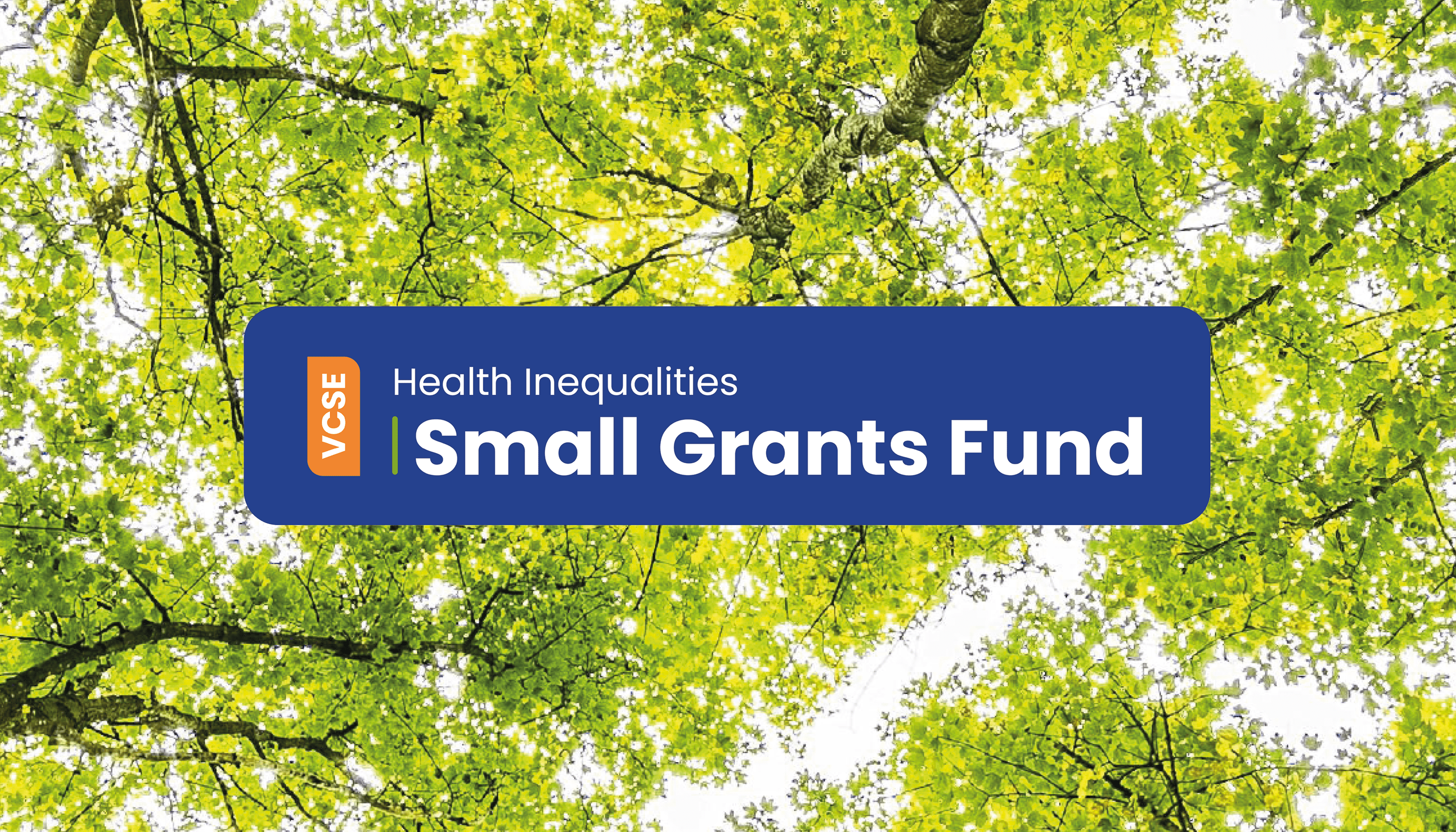 Image shows a background of trees and the logo for VCSE Health Inequalities Small Grants Fund