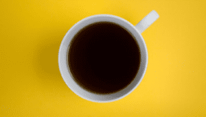 Cup of black coffee on a yellow background